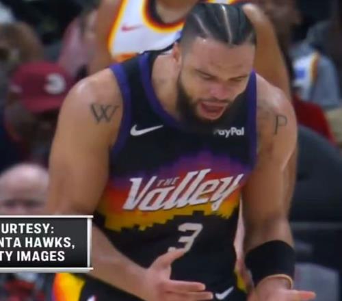 除了杰伦-格林外,太阳最麻烦是太子爷布克也在比赛第三节因伤退赛,慢镜头显示他跑动时踩到奥孔武德脚导致严重崴脚。